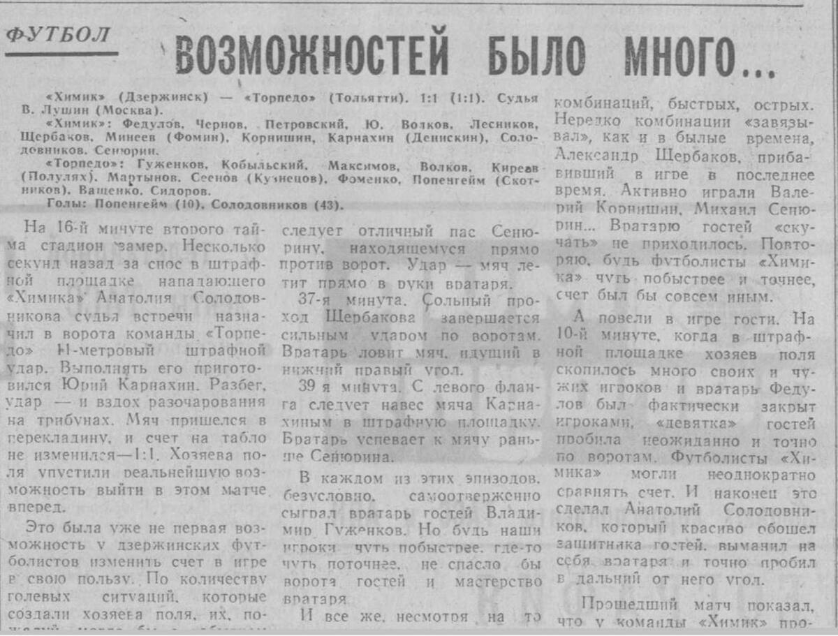 «Химик» Дзержинск - «Торпедо» Тольятти - 1:1