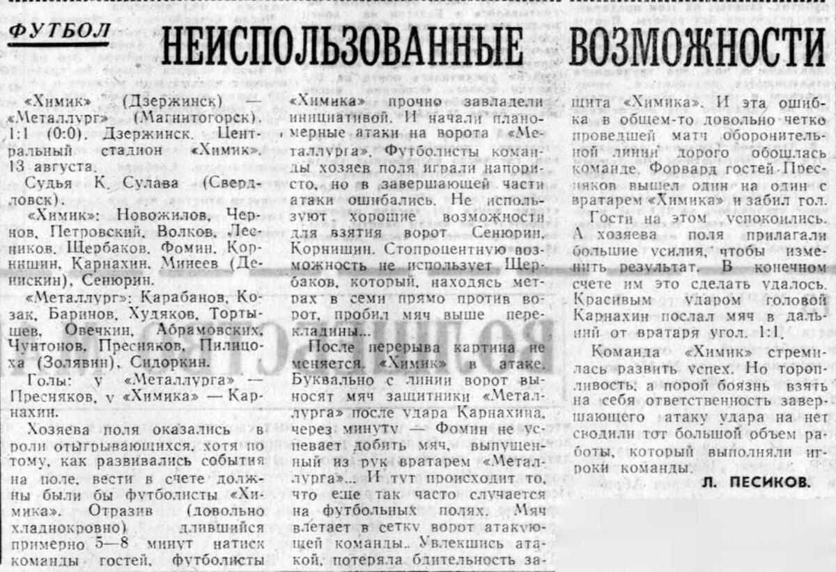 «Химик» Дзержинск - «Металлург» Магнитогорск - 1:1