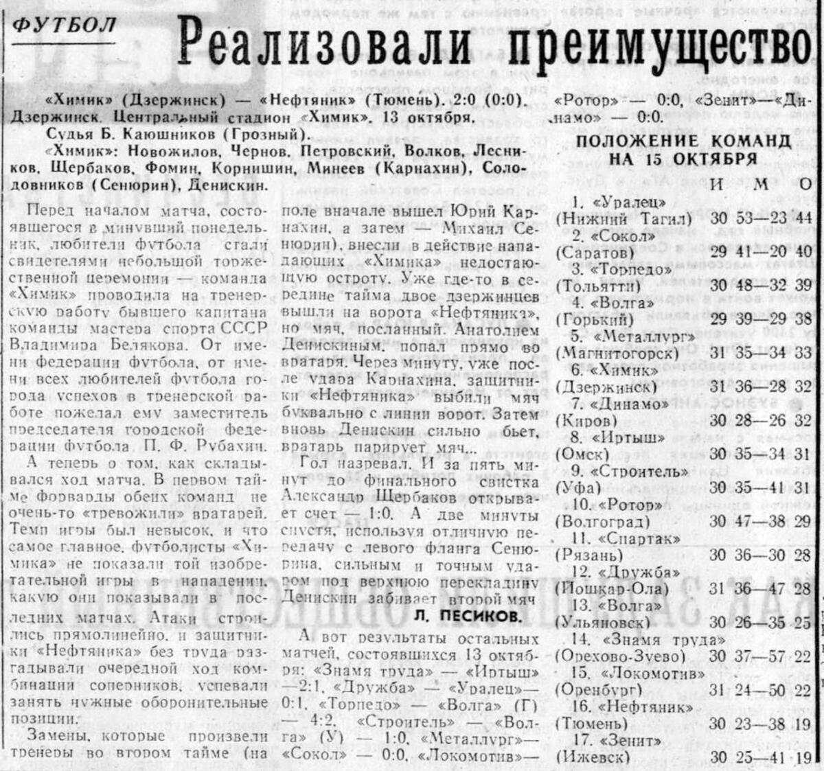 «Химик» Дзержинск - «Нефтяник» Тюмень - 2:0