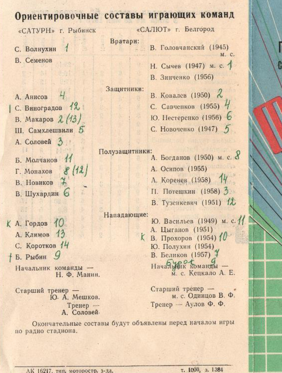 «Сатурн» Рыбинск - «Салют» Белгород - 2:0