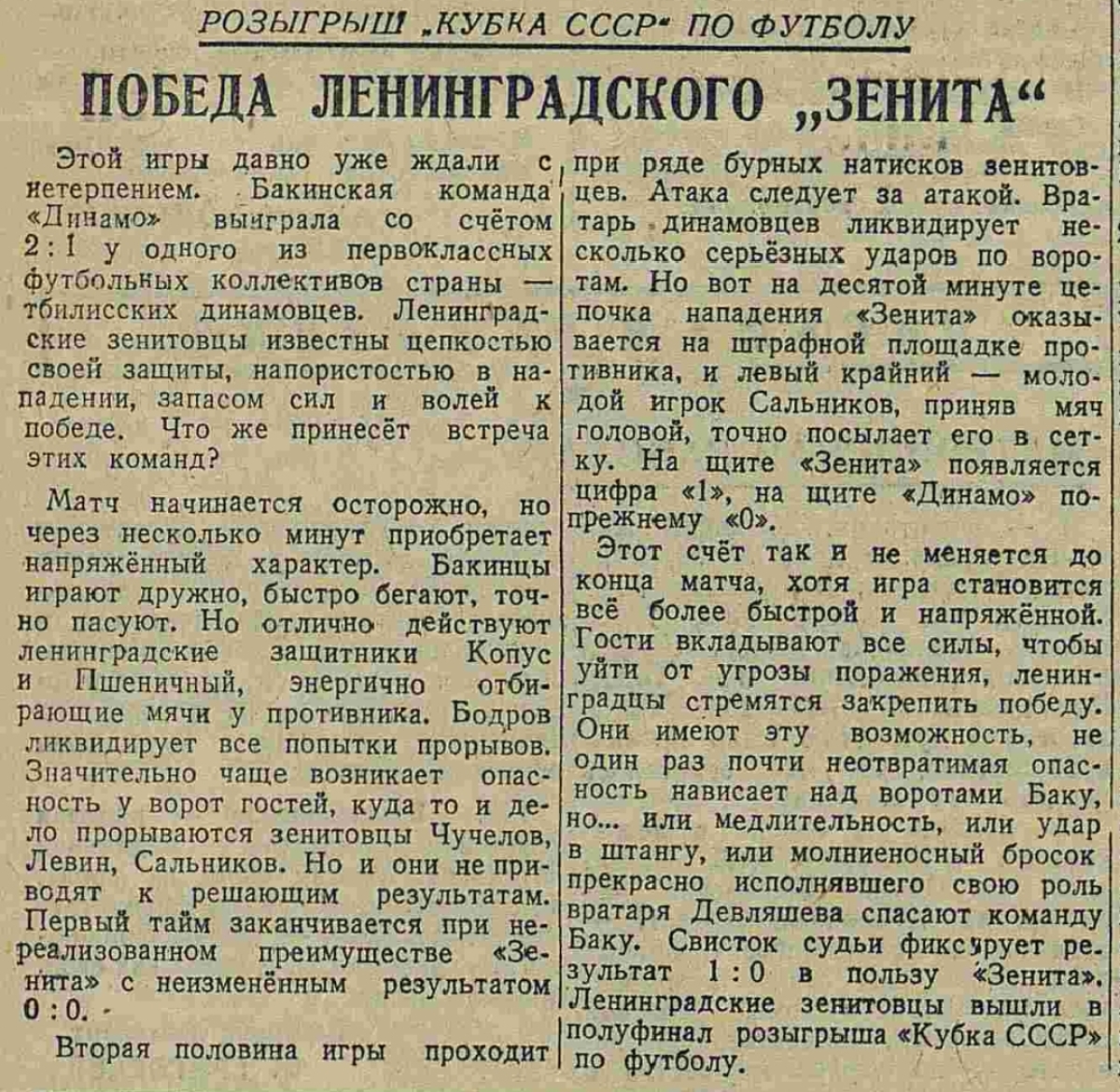 «Зенит» Ленинград - «Динамо» Баку - 1:0