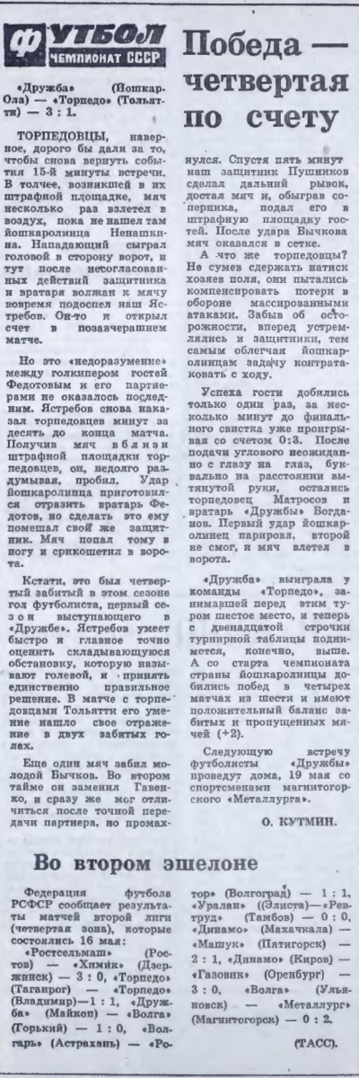 «Дружба» Йошкар-Ола - «Торпедо» Тольятти - 3:1