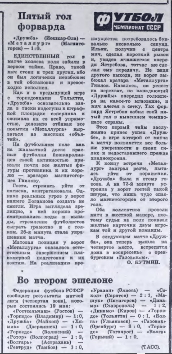 «Дружба» Йошкар-Ола - «Металлург» Магнитогорск - 1:0