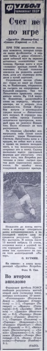 «Дружба» Йошкар-Ола - «Сокол» Саратов - 1:0