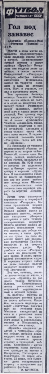 «Дружба» Йошкар-Ола - «Ревтруд» Тамбов - 1:0