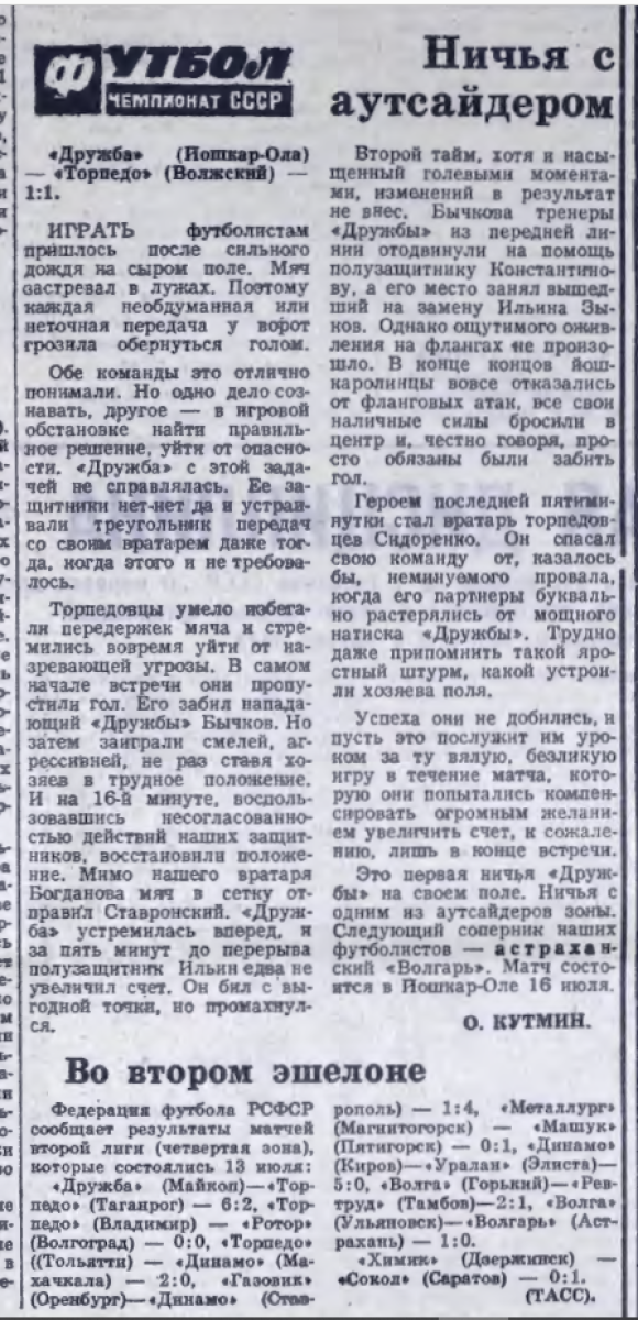 «Дружба» Йошкар-Ола - «Торпедо» Волжский - 1:1