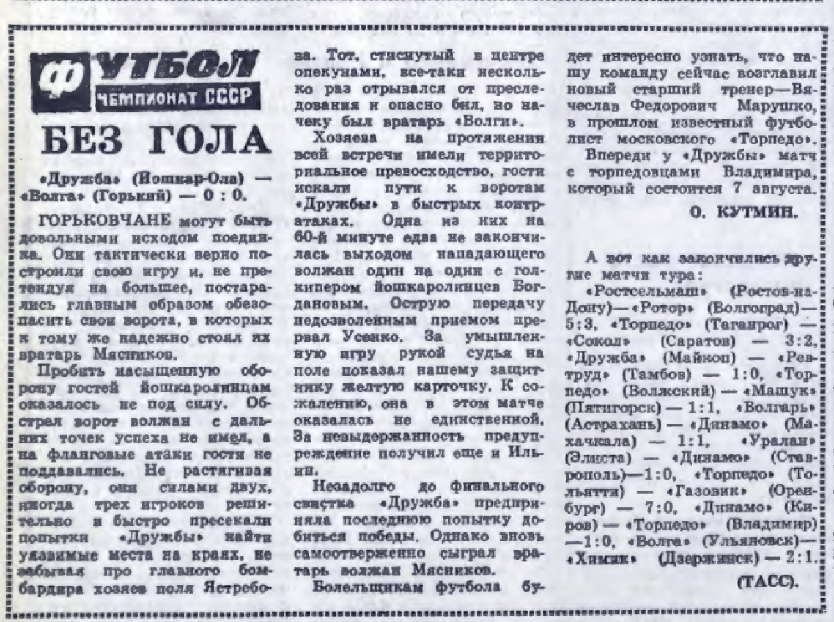 «Дружба» Йошкар-Ола - «Волга» Горький - 0:0