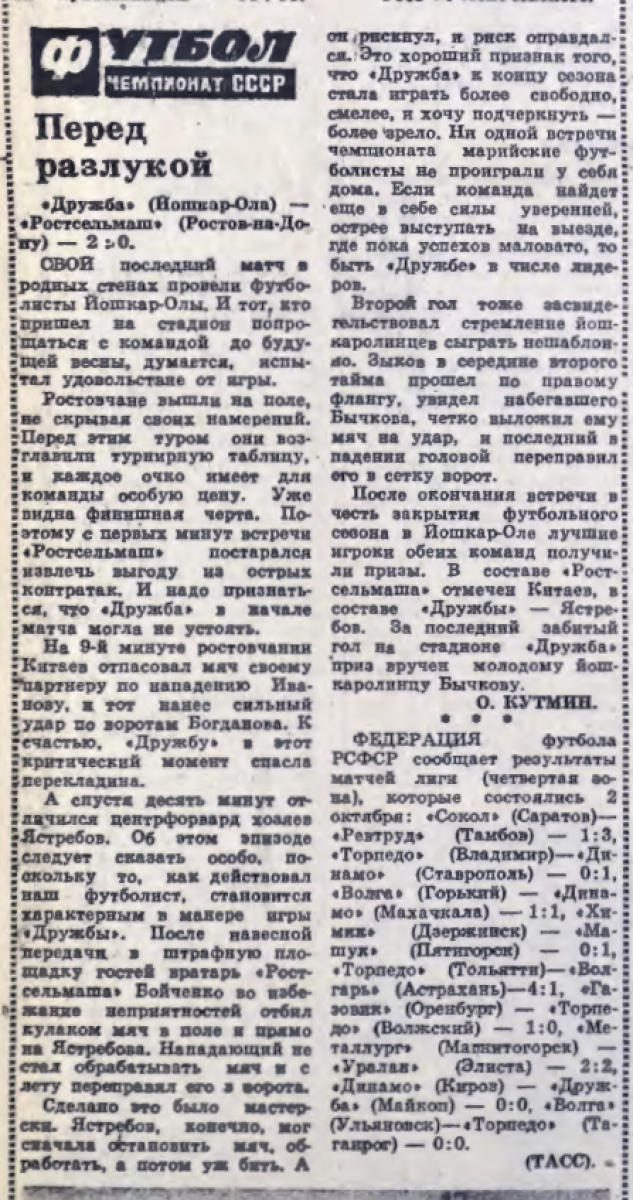 «Дружба» Йошкар-Ола - «Ростсельмаш» Ростов-на-Дону - 2:0