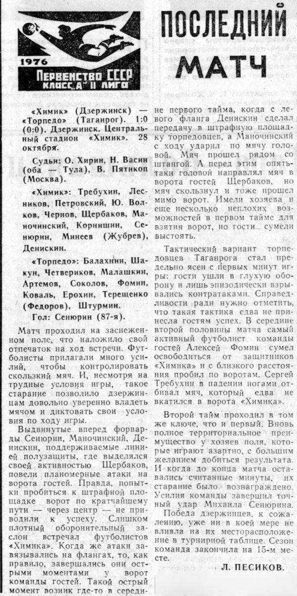 «Химик» Дзержинск - «Торпедо» Таганрог - 1:0