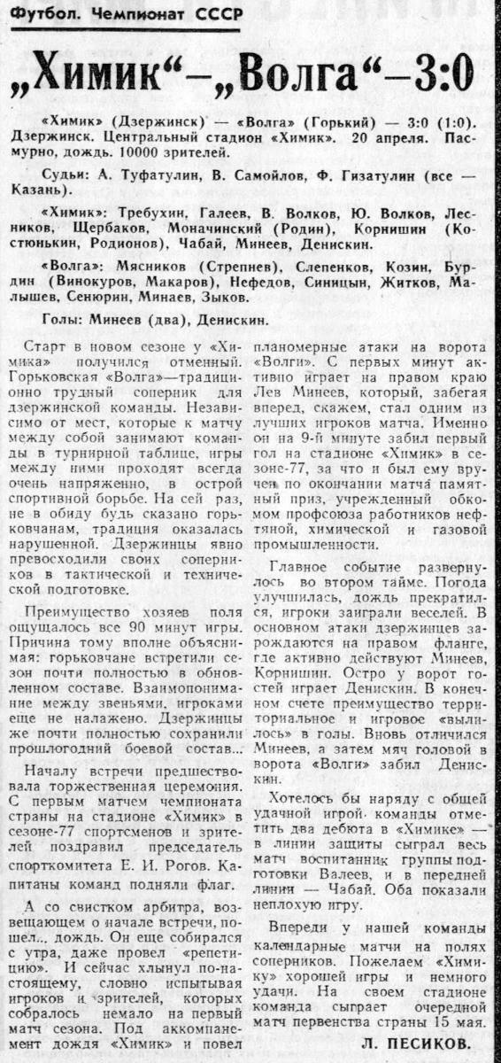 «Химик» Дзержинск - «Волга» Горький - 3:0