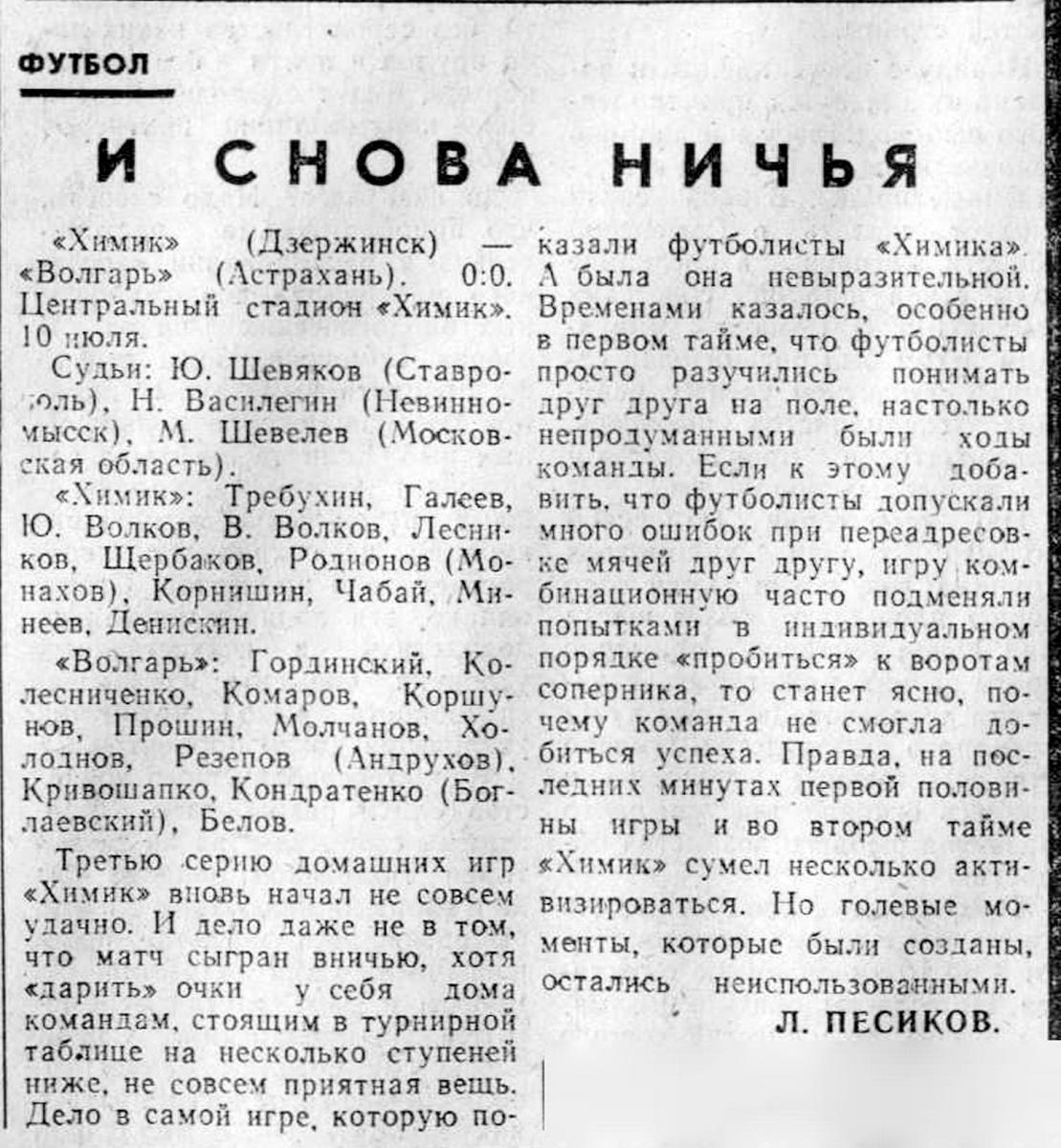 «Химик» Дзержинск - «Волгарь» Астрахань - 0:0