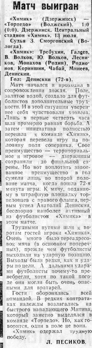 «Химик» Дзержинск - «Торпедо» Волжский - 1:0
