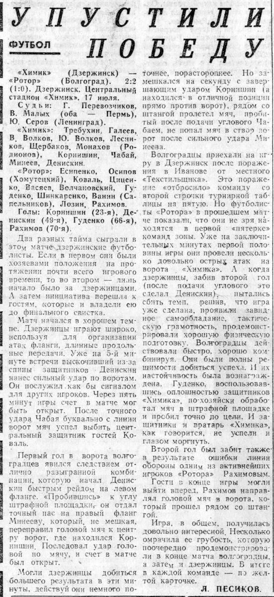 «Химик» Дзержинск - «Ротор» Волгоград - 2:2