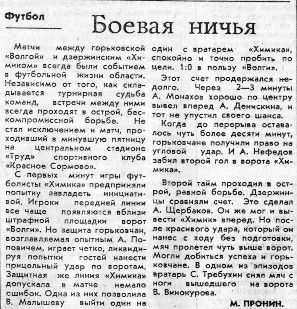 «Волга» Горький - «Химик» Дзержинск - 2:2