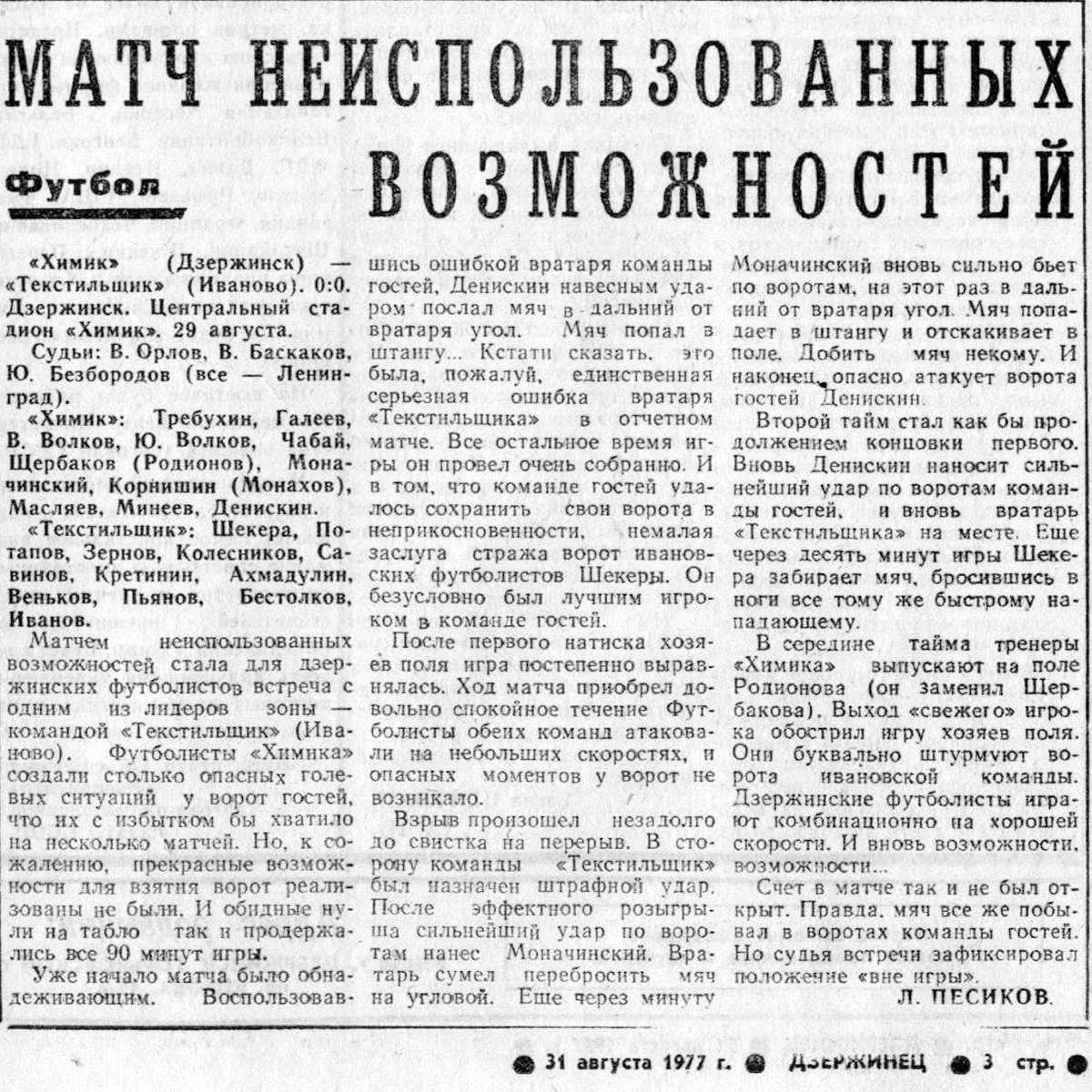 «Химик» Дзержинск - «Текстильщик» Иваново - 0:0