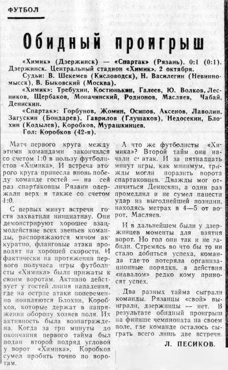 «Химик» Дзержинск - «Спартак» Рязань - 0:1