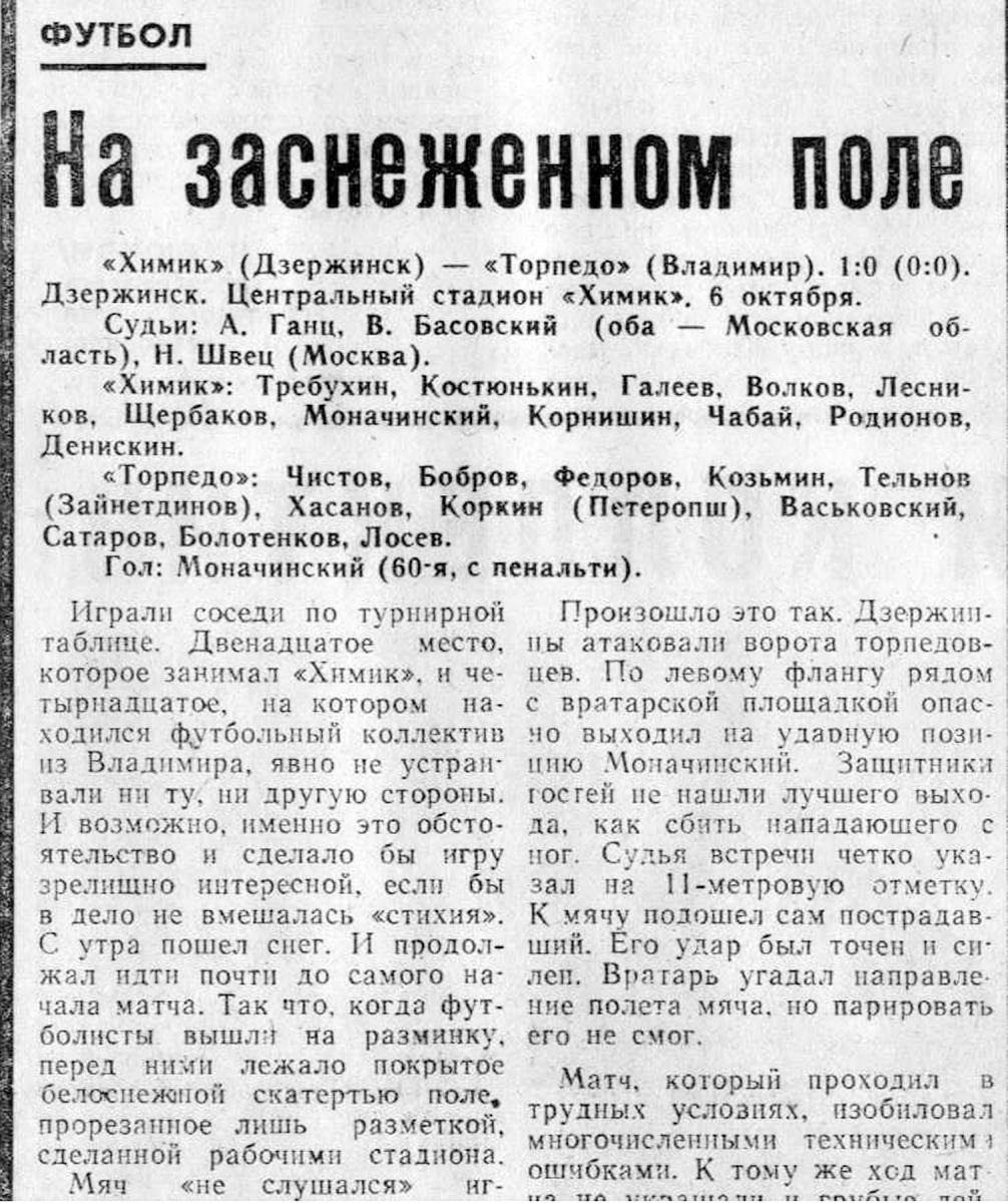 «Химик» Дзержинск - «Торпедо» Владимир - 1:0