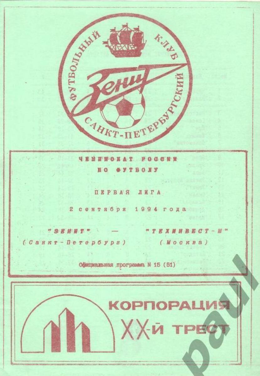 «Зенит» Санкт-Петербург - «Техинвест-М» Московский - 5:1
