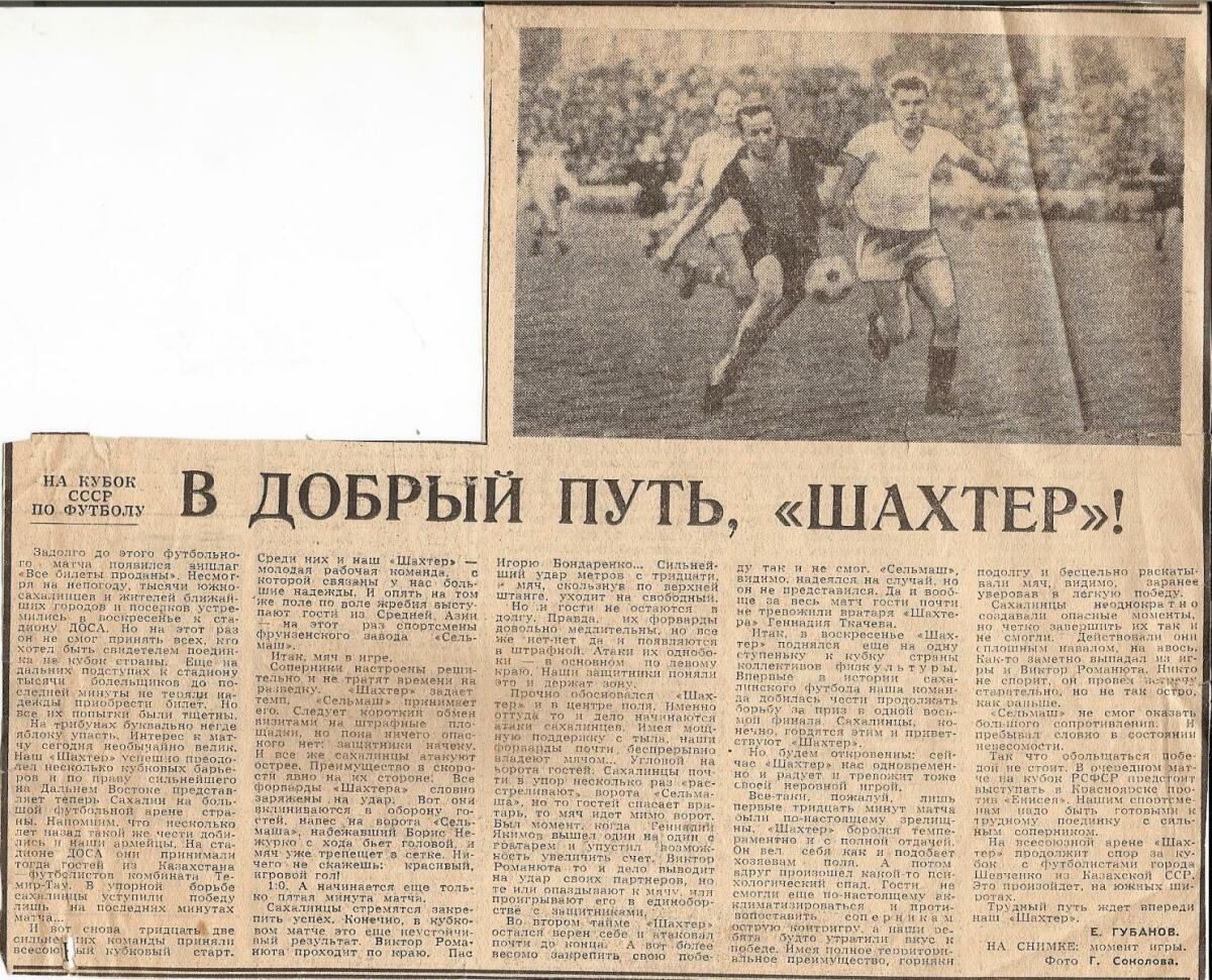 «Шахтёр» Южно-Сахалинск - «Сельмашевец» Фрунзе - 1:0