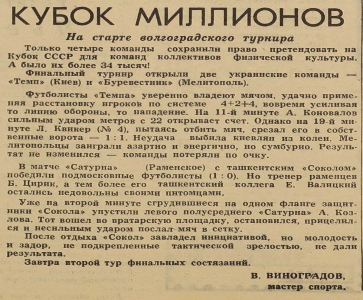 «Сатурн» Раменское - «Сокол» Ташкент - 1:0