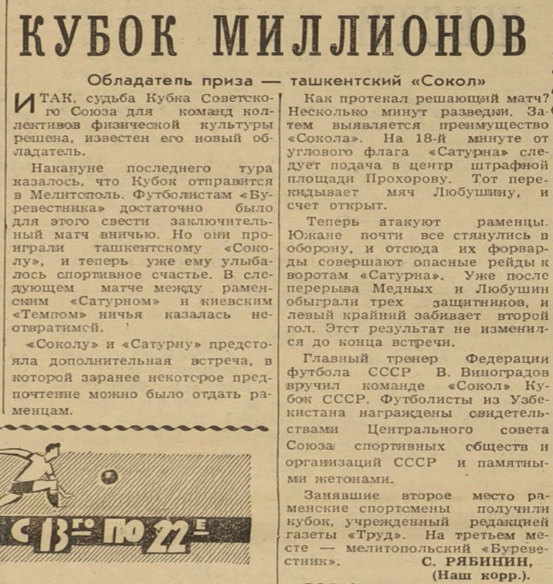 «Сокол» Ташкент - «Сатурн» Раменское - 2:0