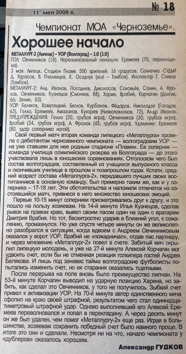 «Металлург-2» Липецк - УОР Волгоград - 1:0