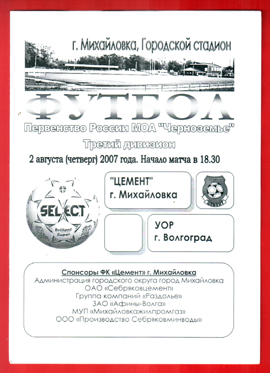 «Цемент» Михайловка - УОР Волгоград - 3:0