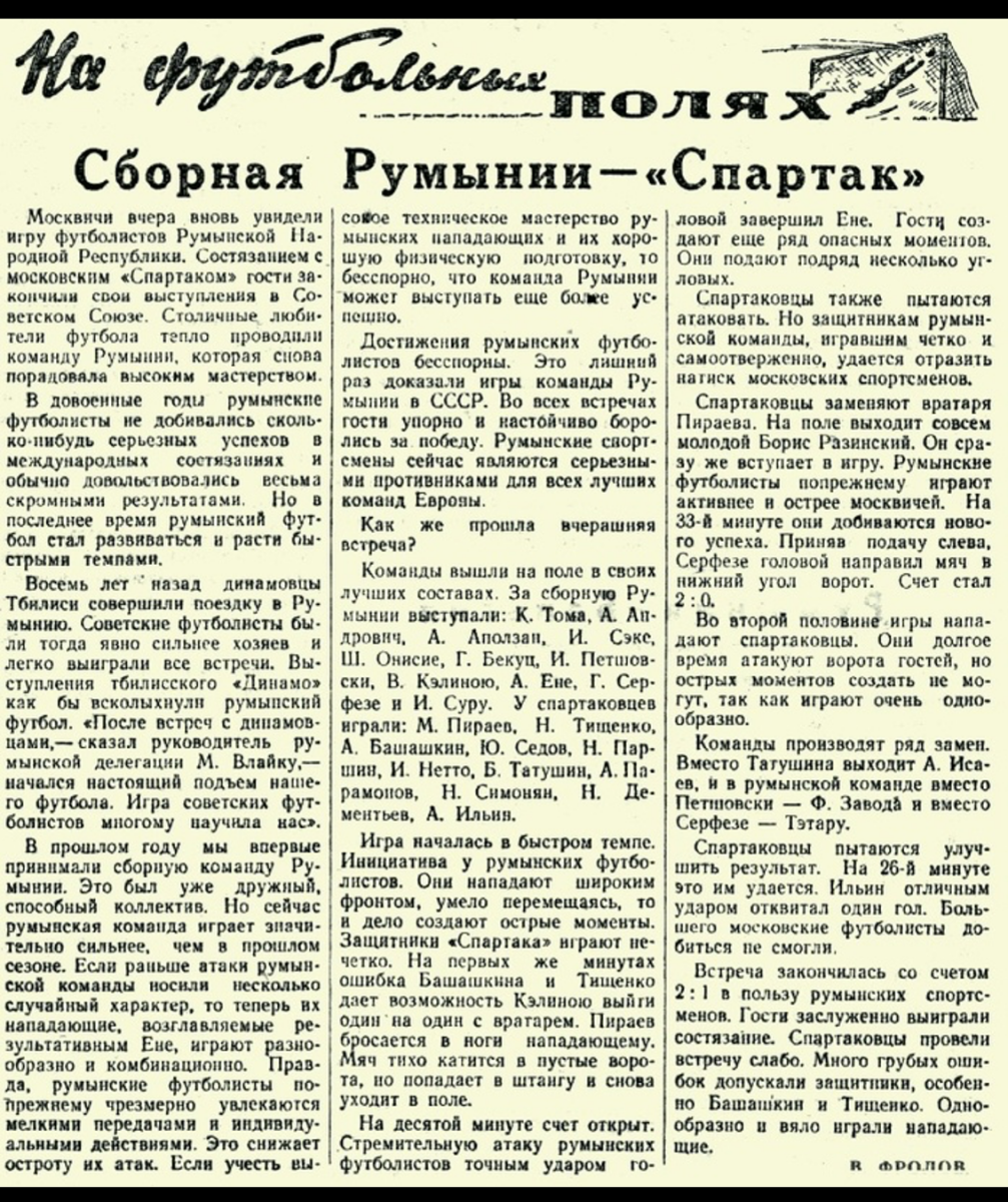 «Спартак» Москва - Румыния - 1:2
