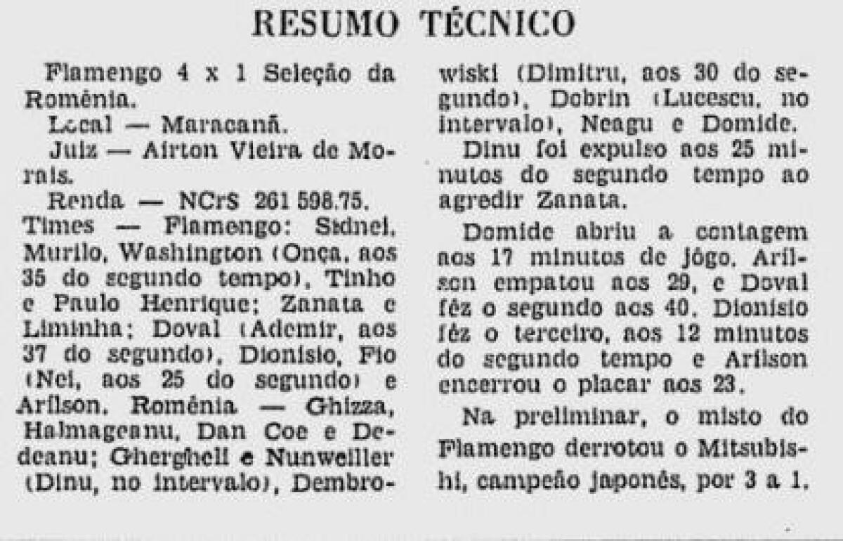 «Фламенго» Рио-де-Жанейро - Румыния - 4:1