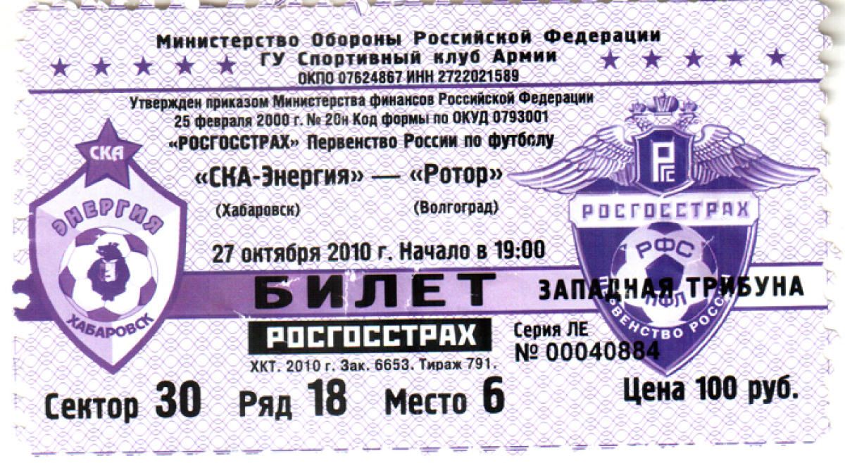 «СКА-Энергия» Хабаровск - «Ротор» Волгоград - 2:0