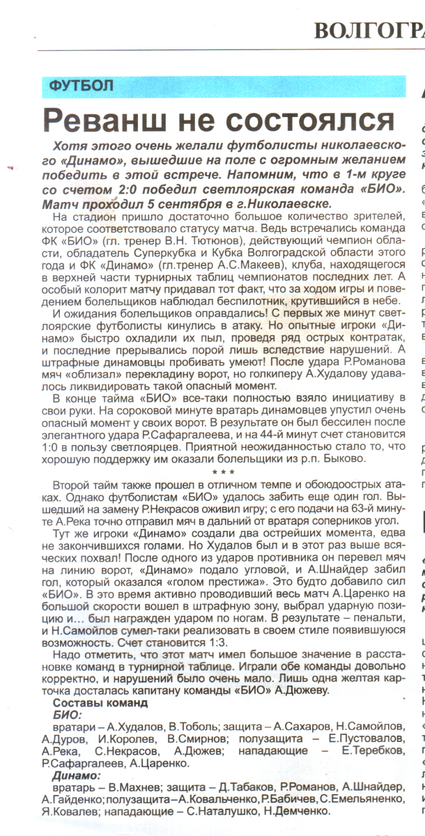 «Динамо» Николаевск - БИО Светлый Яр - 0:3