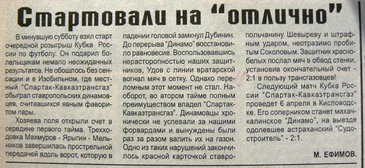 «Спартак-Кавказтрансгаз» Изобильный - «Динамо» Ставрополь - 2:1