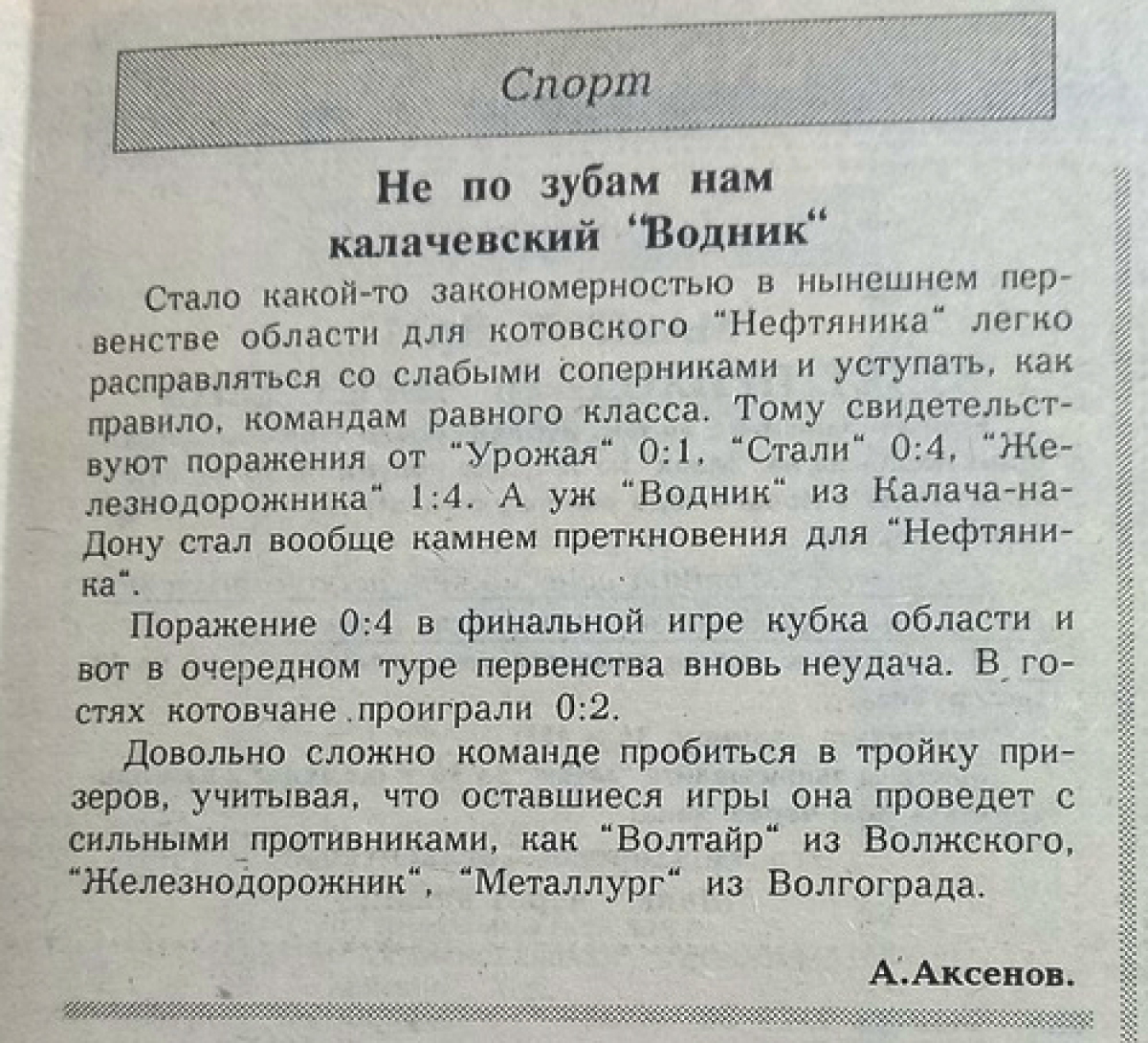 «Водник» Калач-на-Дону - «Нефтяник» Котово - 2:0
