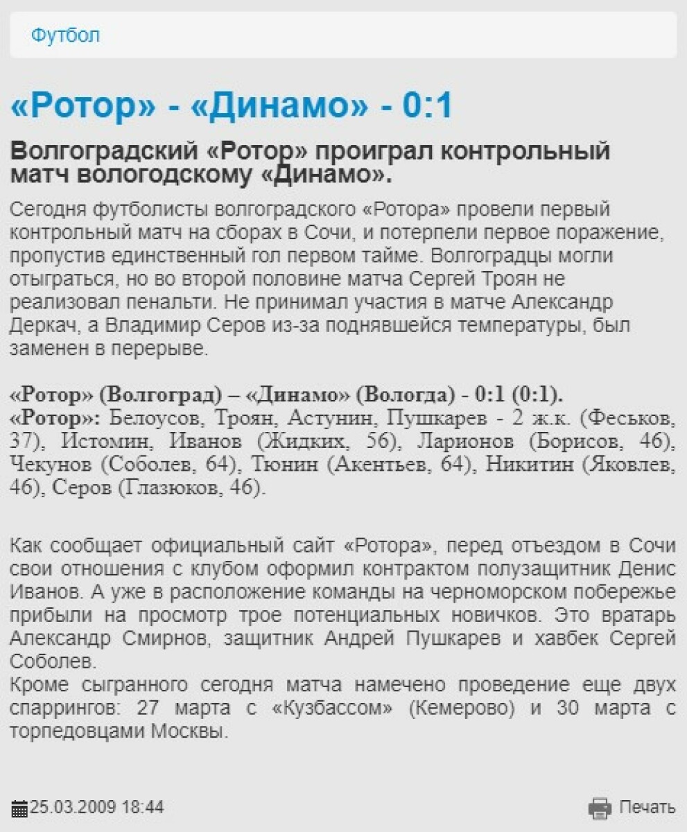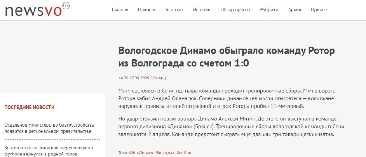 «Динамо» Вологда - «Ротор» Волгоград - 1:0