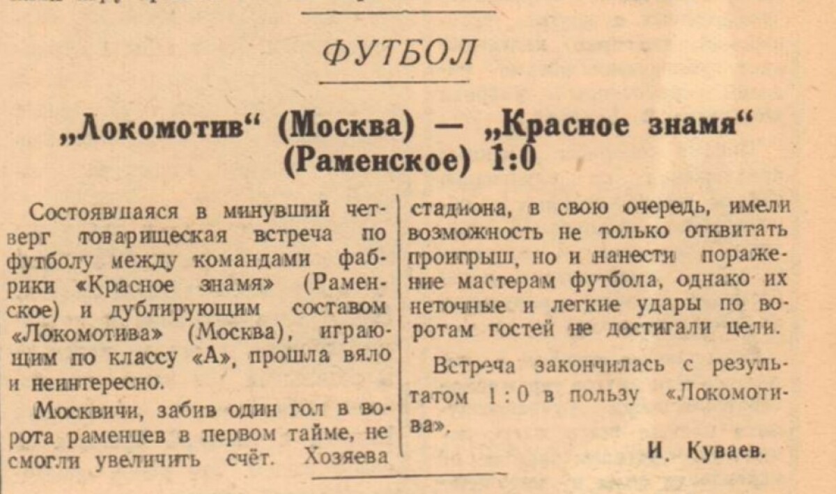 «Красное знамя» Раменское - «Локомотив-Д» Москва - 0:1