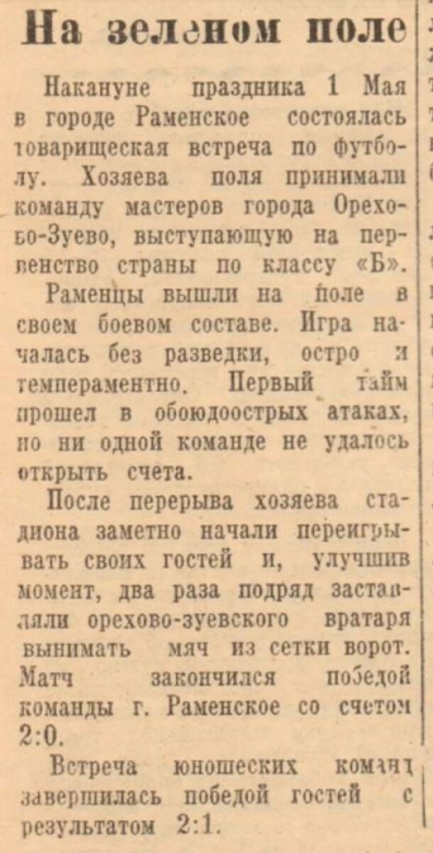 «Труд» Раменское - «Знамя Труда» Орехово-Зуево - 2:0