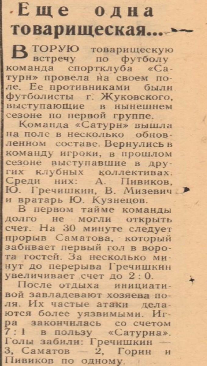 «Сатурн» Раменское - «Метеор» Жуковский - 7:1
