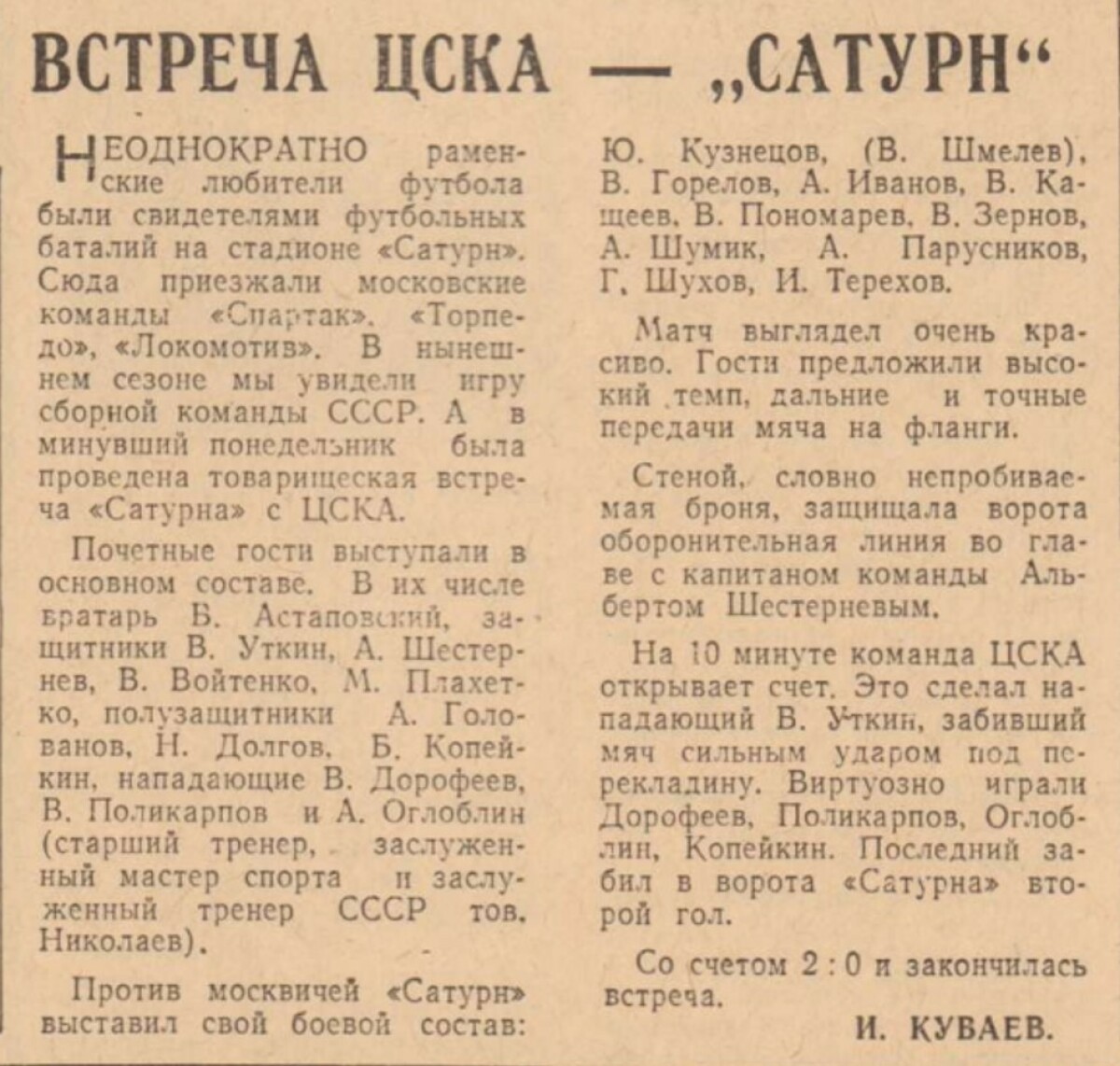 «Сатурн» Раменское - ЦСКА Москва - 0:2