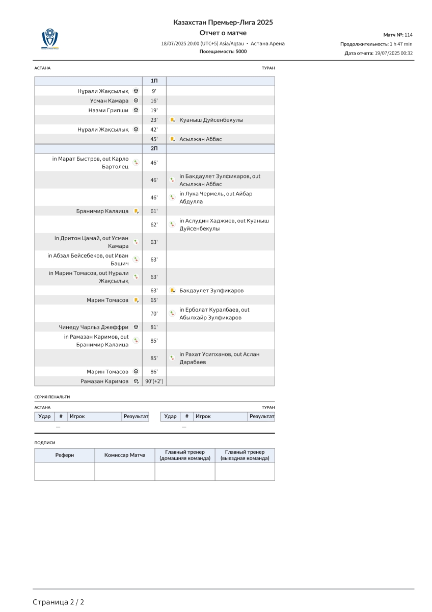 «Астана» Астана - «Туран» Туркестан - 7:0