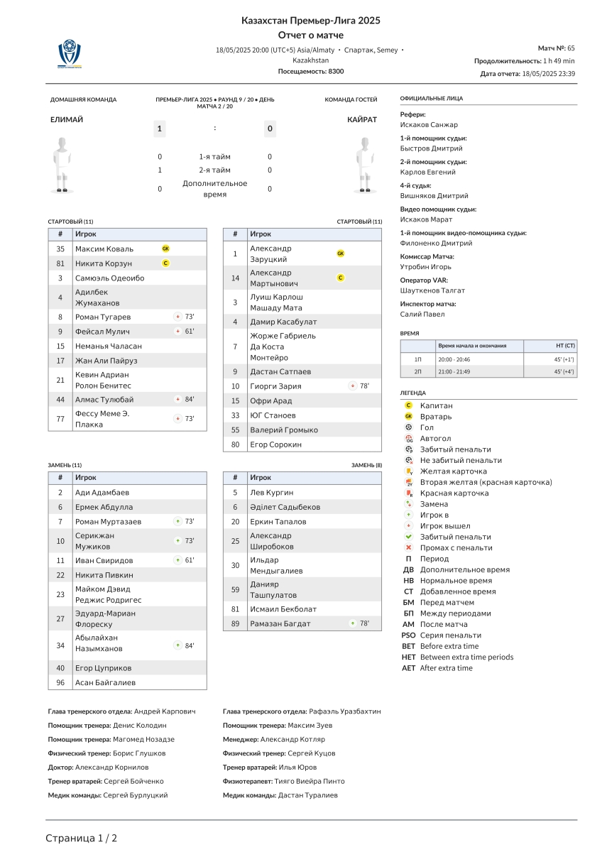 «Елимай» Семей - «Кайрат» Алма-Ата - 1:0