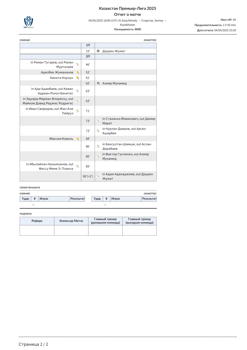 «Елимай» Семей - «Окжетпес» Кокчетав - 0:2