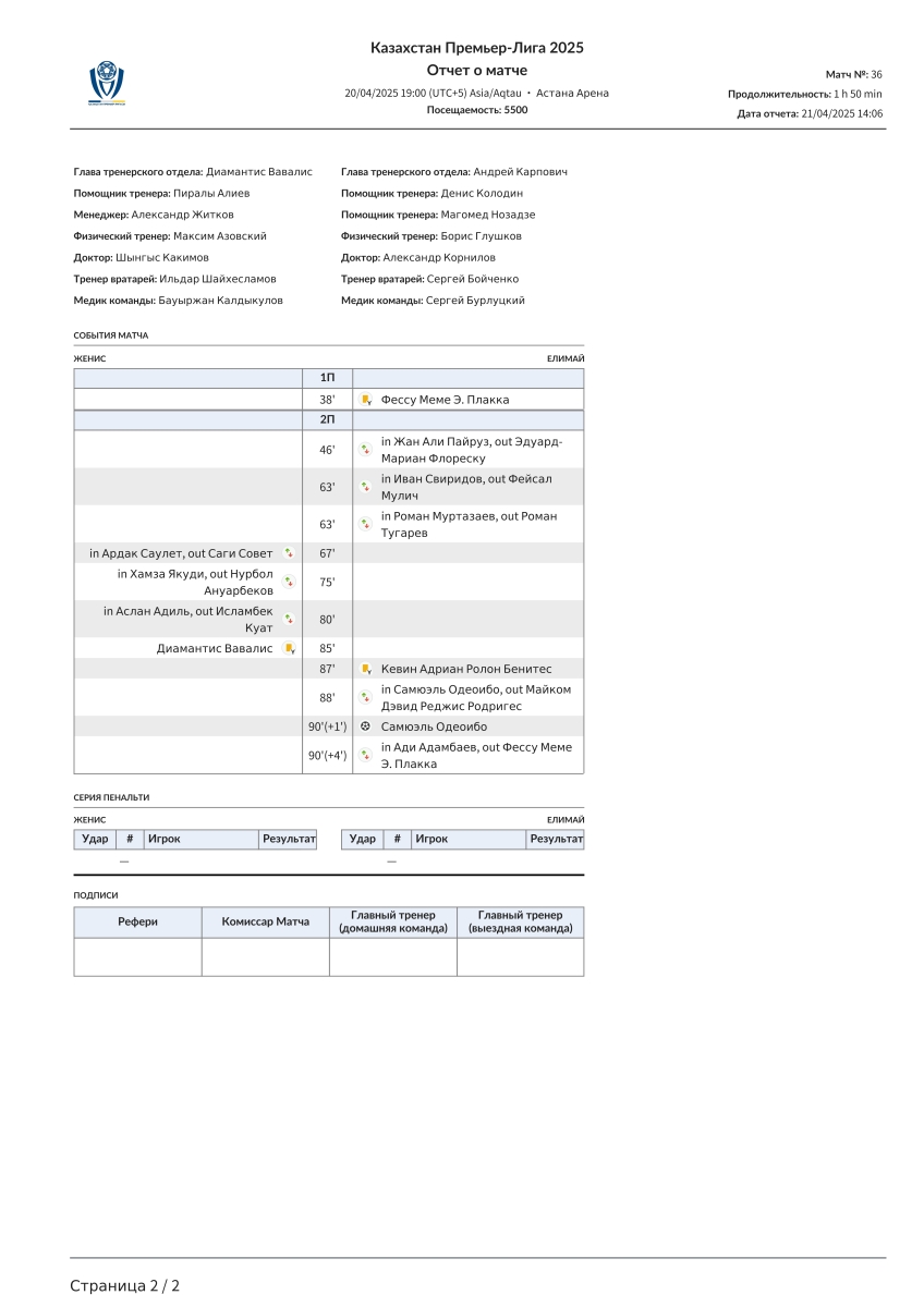 «Женис» Астана - «Елимай» Семей - 0:1
