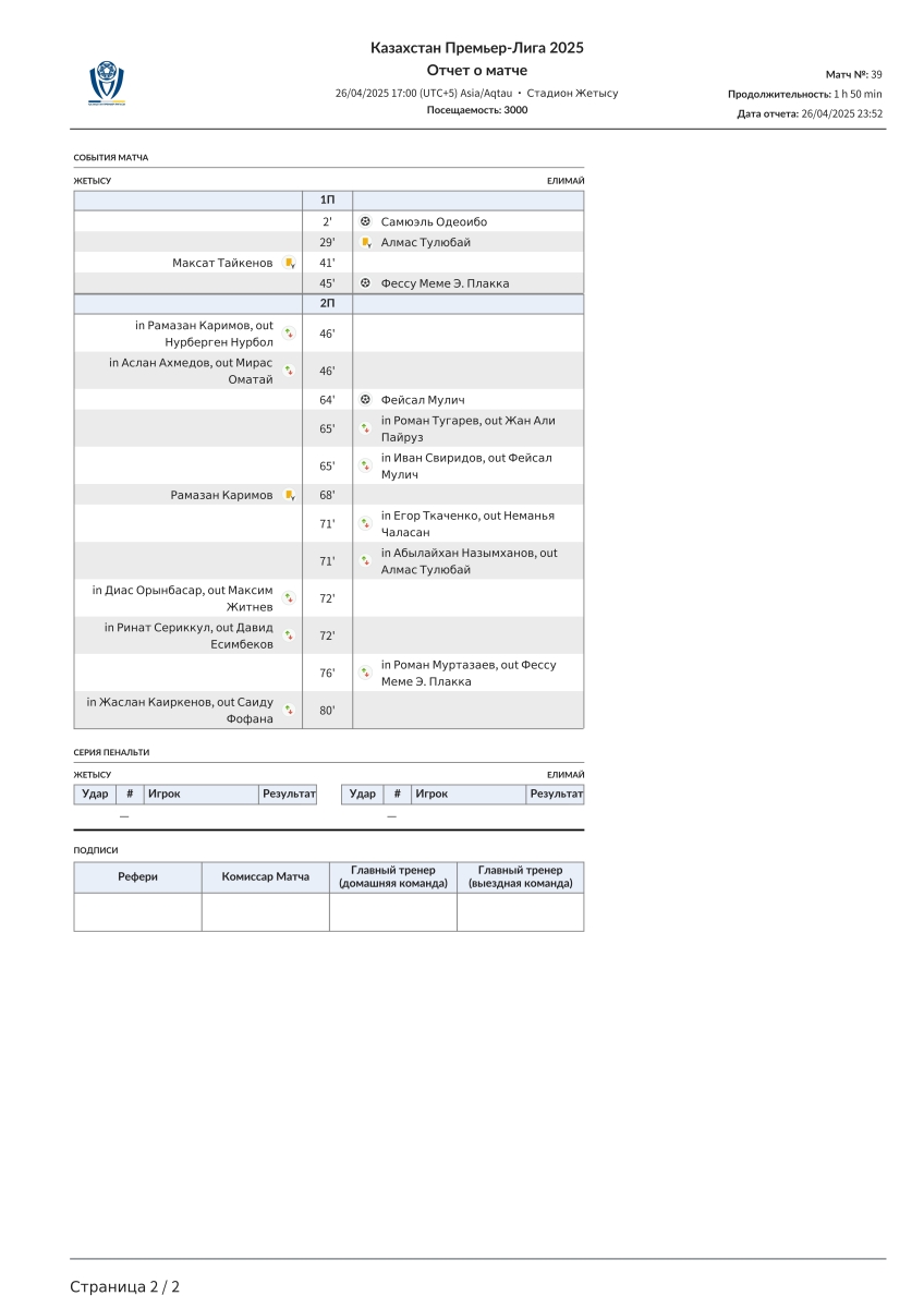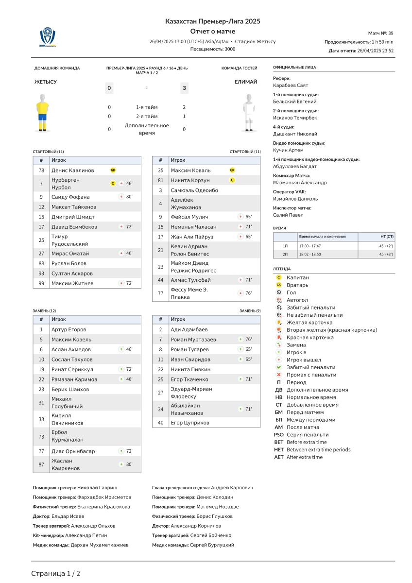 «Жетысу» Талды-Курган - «Елимай» Семей - 0:3