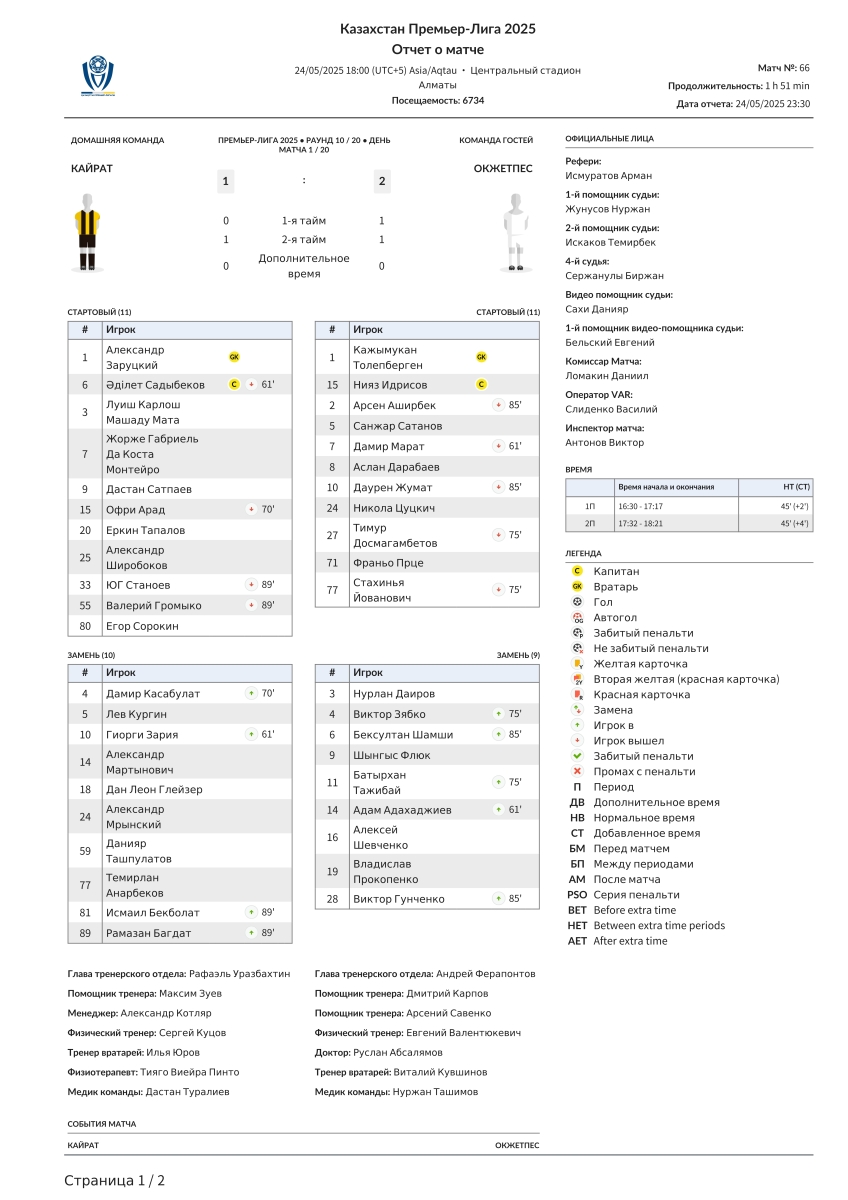 «Кайрат» Алма-Ата - «Окжетпес» Кокчетав - 1:2