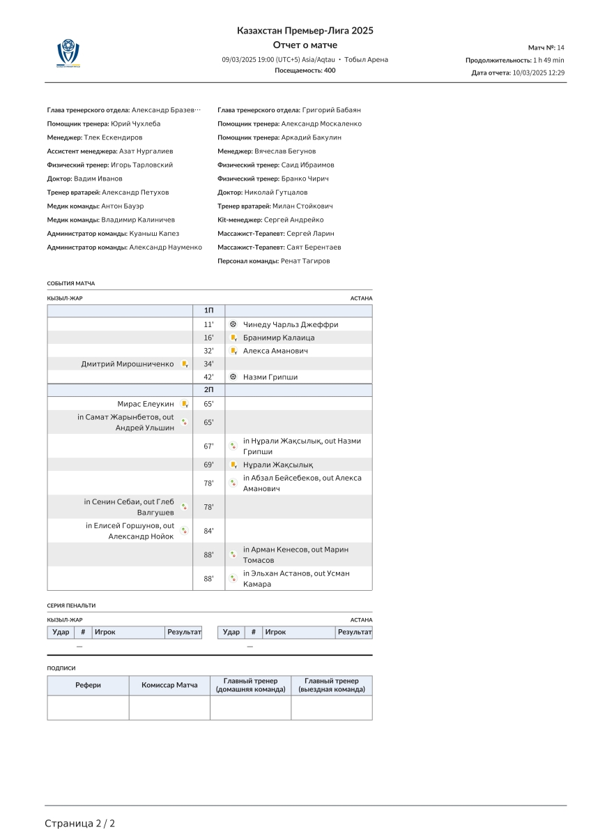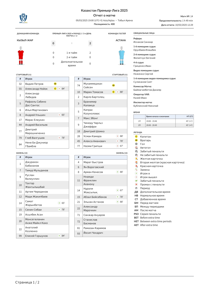 «Кызыл-Жар СК» Петропавловск - «Астана» Астана - 0:2