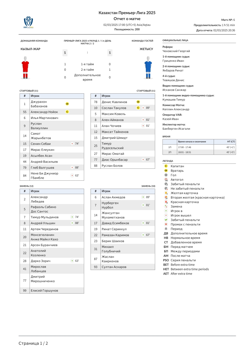 «Кызыл-Жар СК» Петропавловск - «Жетысу» Талды-Курган - 1:1
