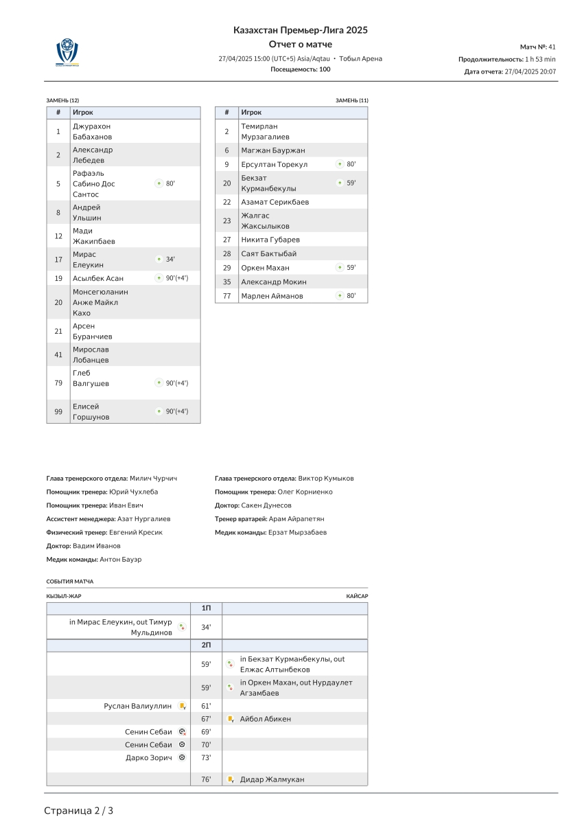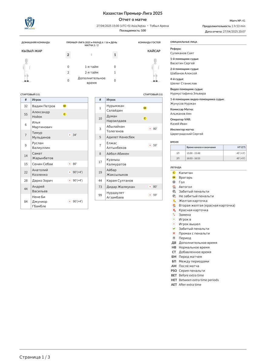 «Кызыл-Жар СК» Петропавловск - «Кайсар» Кзыл-Орда - 2:1