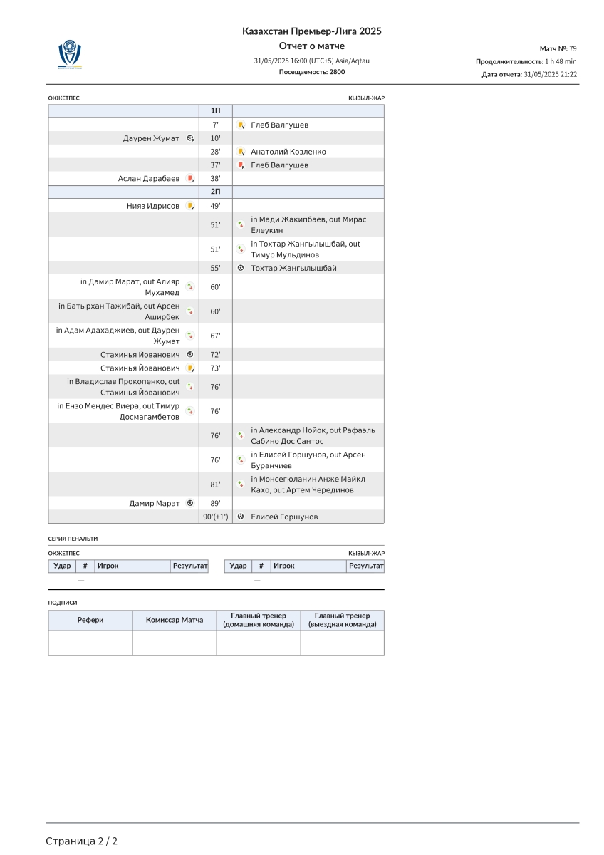 «Окжетпес» Кокчетав - «Кызыл-Жар СК» Петропавловск - 3:2