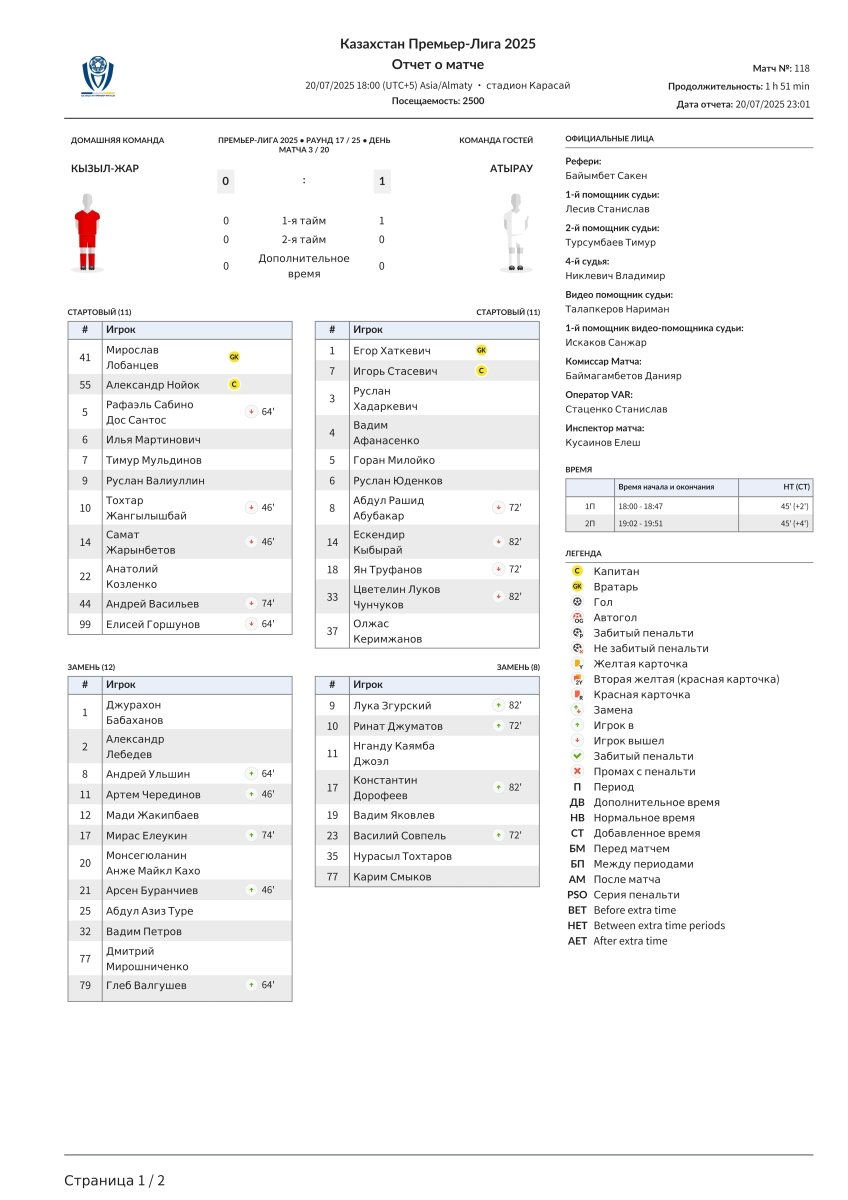 «Окжетпес» Кокчетав - «Улытау» Джезказган - 1:0