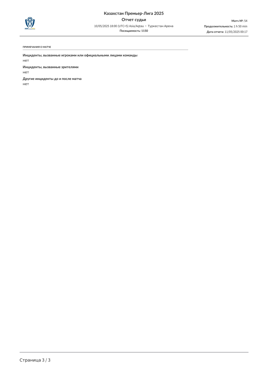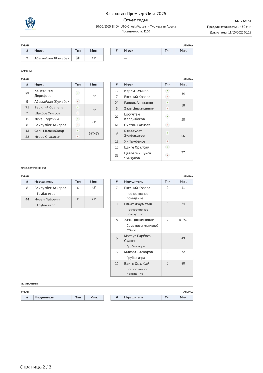 «Туран» Туркестан - «Атырау» Атырау - 1:0